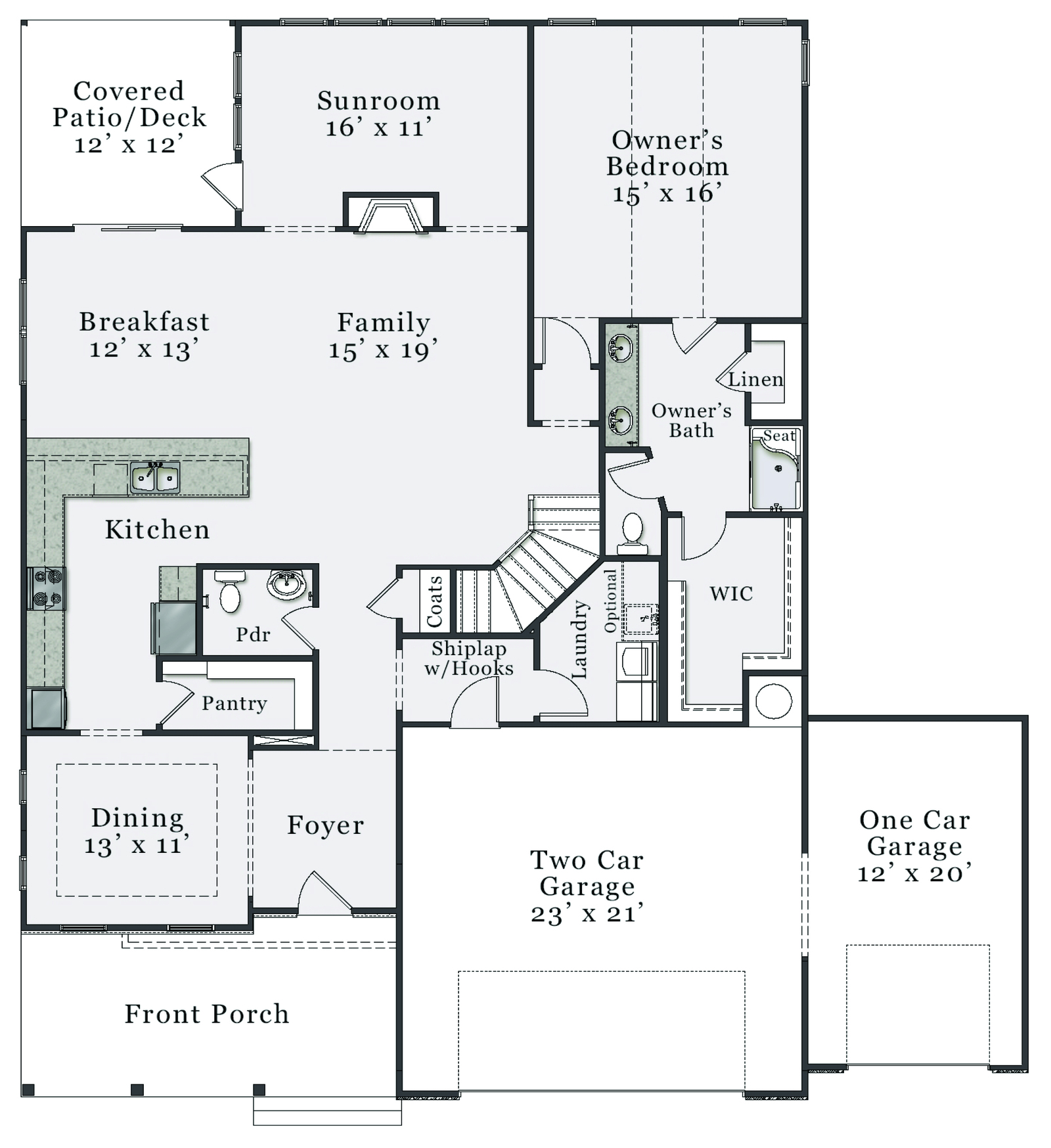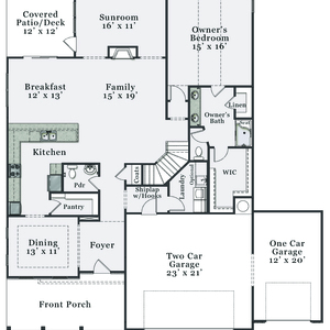 The Clark is a multi-generational floorplan with dual owner’s suites on the first and second levels. The expansive kitchen is a chef’s dream with a large pantry and plenty of counter space for all your cooking and entertaining needs. Options include a beautiful first-floor sunroom that fills your home with light as well as a deluxe owner's bath. For even more living space, you can add a finished third floor with a full bath. Additional exterior options include a covered rear porch and sideload or three-car garage depending on lot size and orientation.