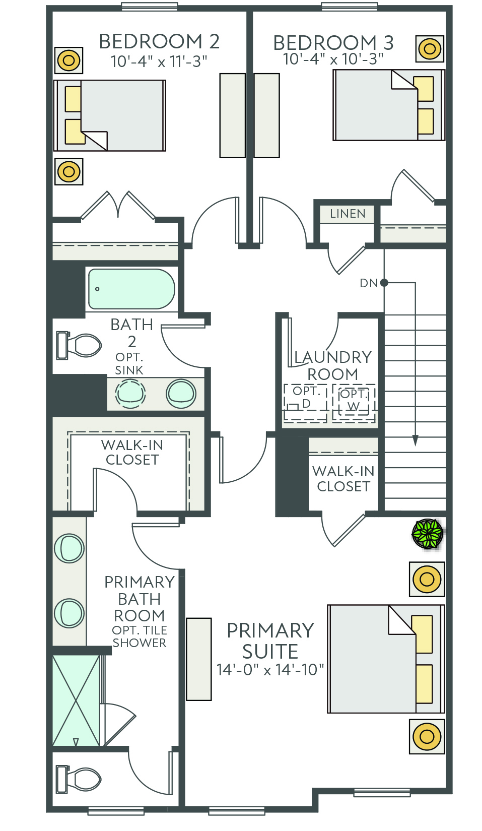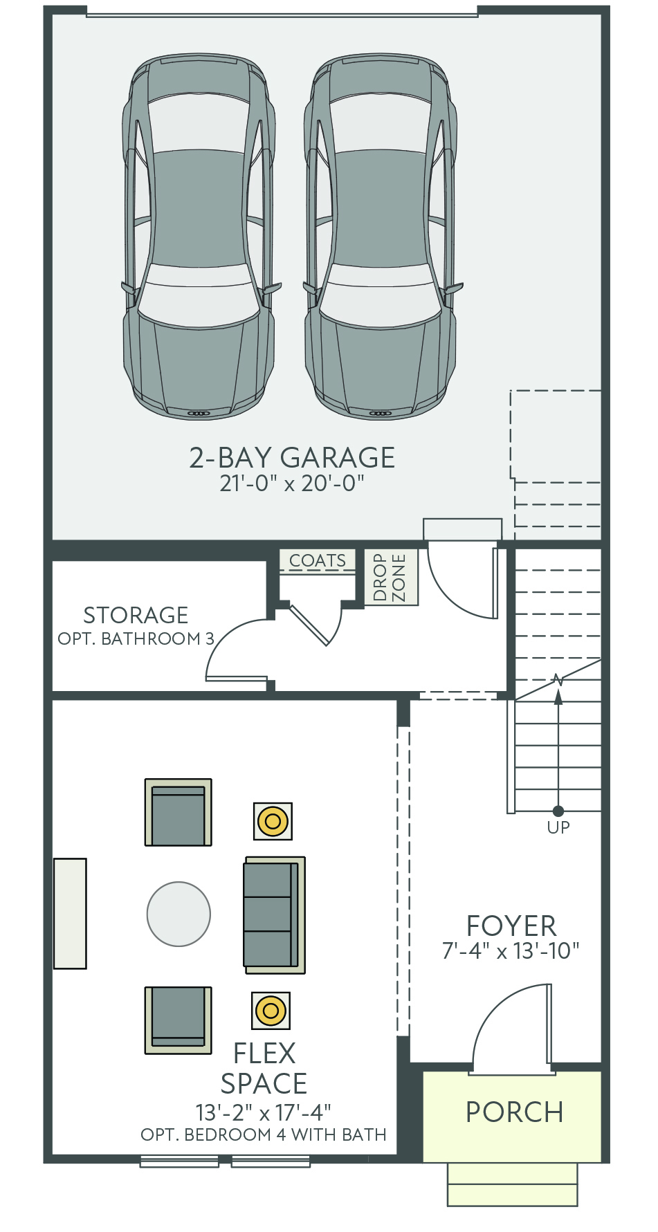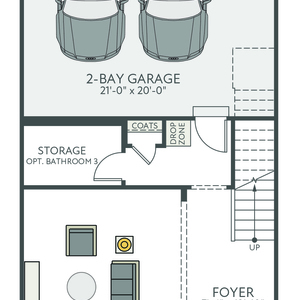 The Ryder is a modern three-story townhome in charming Wake Forest, designed with convenience in mind. It features a rear-load, 2-bay garage, a drop zone, and a flexible first-floor space ideal for a home office or gym. The gourmet kitchen boasts a large island, perfect for gatherings, and a 12080 sliding glass door in the great room enhances natural light. Upstairs, the third floor offers a spacious primary suite and two additional bedrooms. Thoughtful upgrades include Bath 3 in lieu of storage with optional shower, optional stair rails, and a second sink in Bath 2 for added functionality and comfort.
