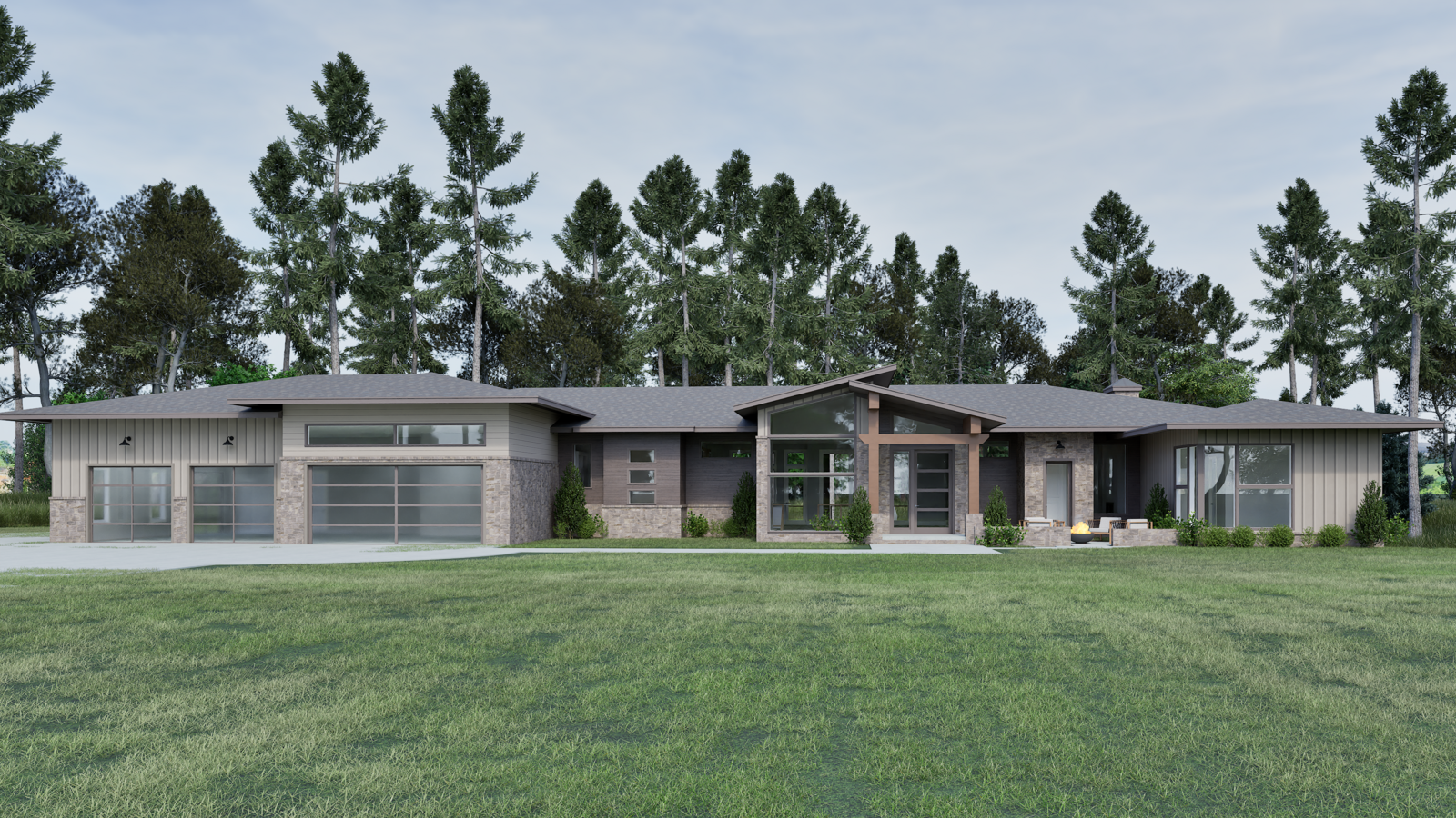 The latest Signature Showcase Home by Rex Bost of Bost Custom Homes, Montana Grace draws inspiration from the American Rockies, melding contemporary architecture with timeless, rustic, and truly massive materials. The primary bath features a 3,500 lb. hand carved stone tub, beneath two heavy reclaimed timber beams from a deconstructed Chatham Co. barn. The anchor of the open living-dining-kitchen, a true masonry wood-burning fireplace featuring a ¾ ton structural stone lintel, surrounded by a sunken hearth for comfy fireside conversation. The basement includes a wine cellar, gym, and barnwood clad music venue for live band parties. Taking advantage of the lake and pond views, the main level pool deck features a dramatic waterfall to the lower swimming basin at the basement level.