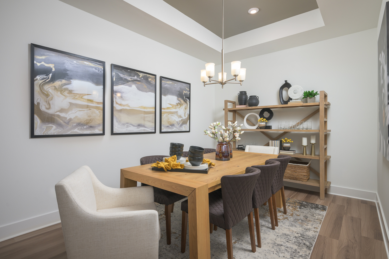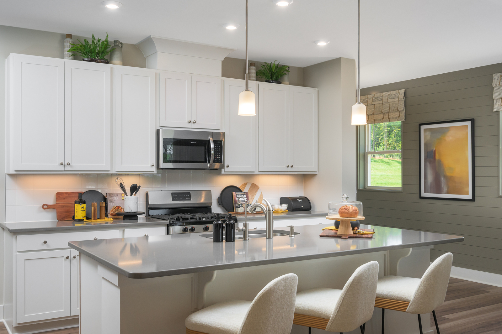 Enjoy casual meals at the spacious island or host memorable gatherings in the dining area accented by a tray ceiling.