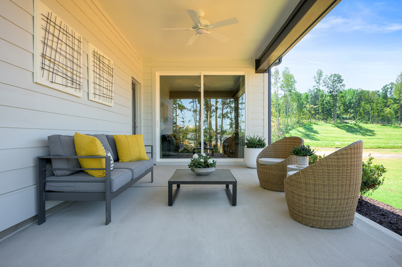 Begin your day by soaking up the fresh air on your covered porch while enjoying coffee.