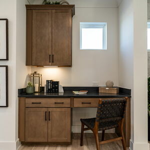 Upon entering, you are greeted by the study showcasing the varying shades of green and brown that bring the natural beauty of the outside into this home. The open-concept kitchen, dining and family area is ideal for gatherings and includes a built-in desk. Enjoy movie and game nights in the upstairs retreat, and delight in the convenience of an upstairs laundry room with a built-in countertop. The charming Owner’s Retreat features a tray ceiling and green accent wall. Two additional bedroom provides space for guests, and your dream hobby room.