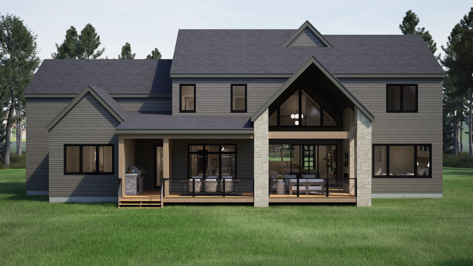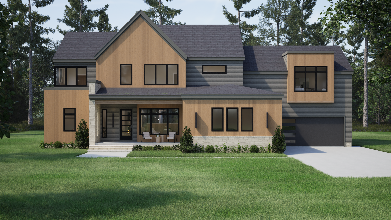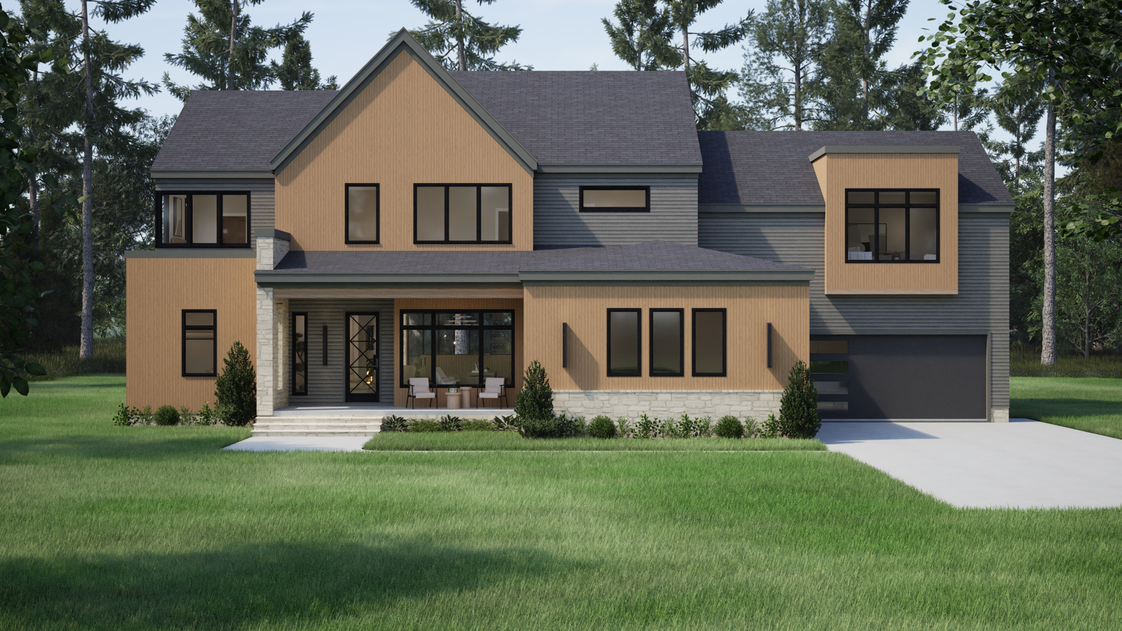 A perfect blend of modern design and rustic charm, this new construction home on a spacious 1-acre lot features natural walnut cabinets, soaring floor-to-ceiling stone fireplaces, and a tranquil interior garden.