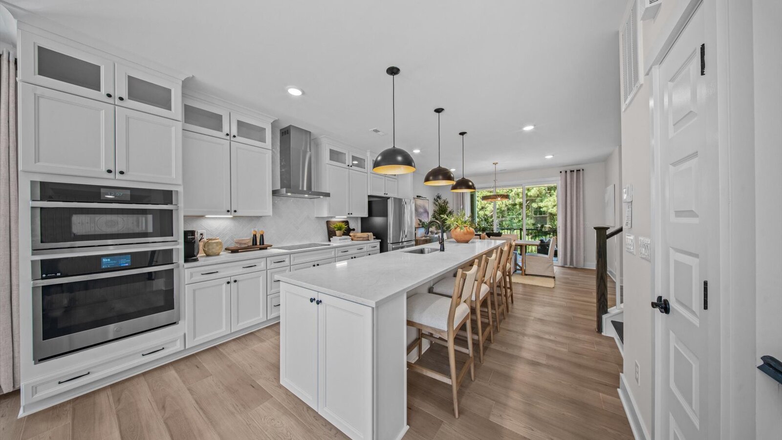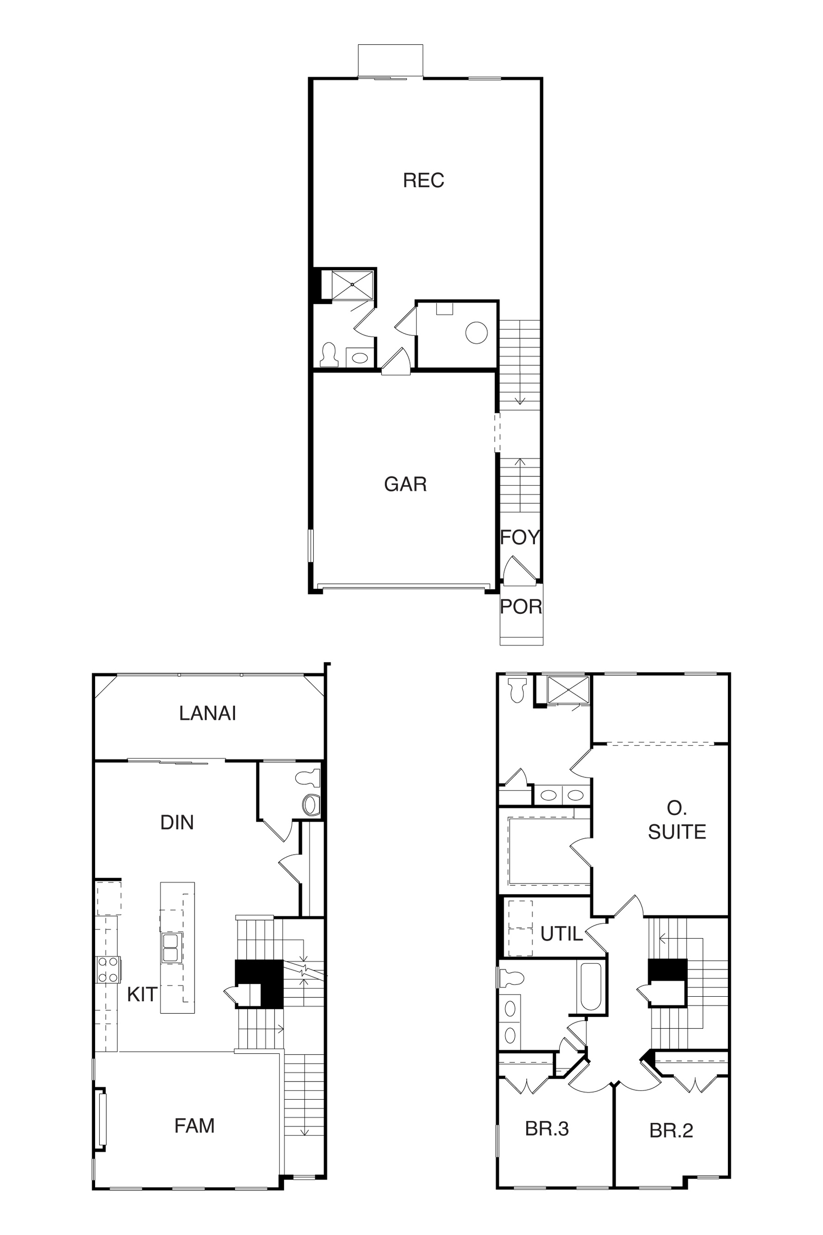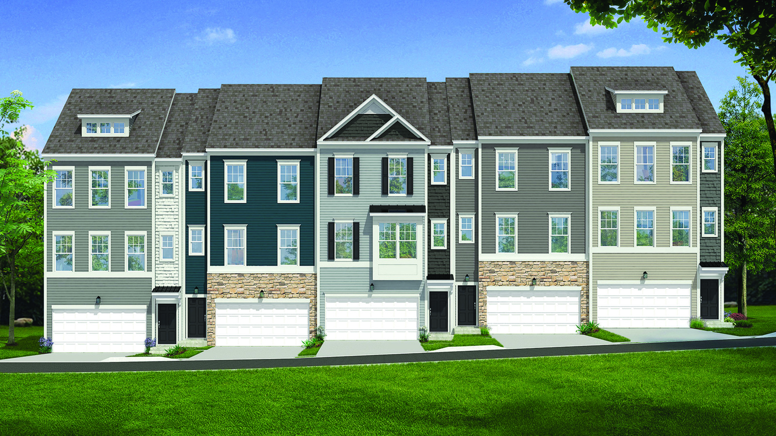Luxurious Harlow townhome with functional 3-level layout and 2 car garage First-floor rec room with optional full or powder bathroom Open-concept second floor with kitchen, breakfast area & family room Central kitchen features large island, ideal for entertaining Optional electric fireplace adds cozy ambiance Outdoor living with rear deck or covered lanai with gas fireplace option Third-floor primary suite with oversized closet and spa-like bath Optional 8 ft. extension adds a bright sitting area to the primary suite Two secondary bedrooms, full bath, and laundry on upper level