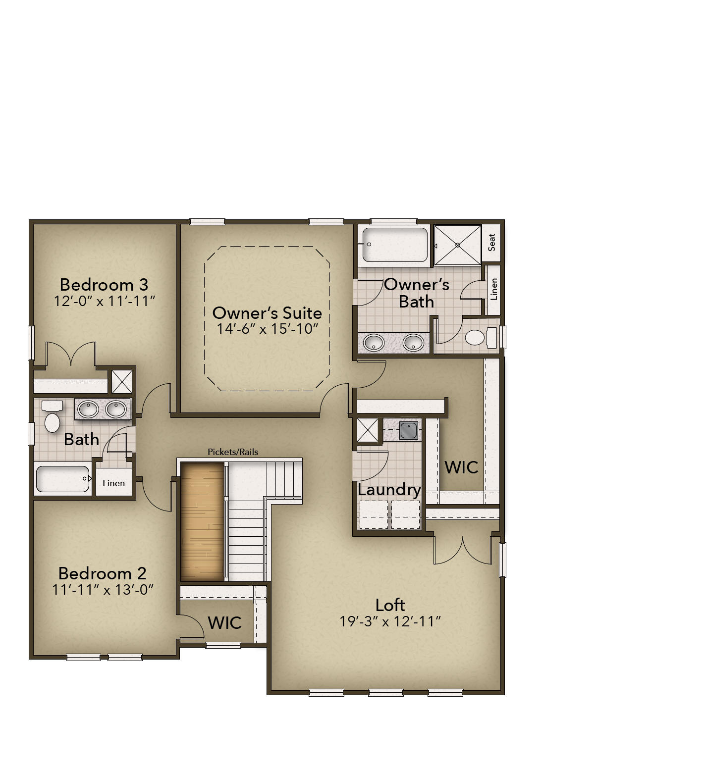 - Double Bowl Sinks in Owner's Suite and Secondary Bathroom